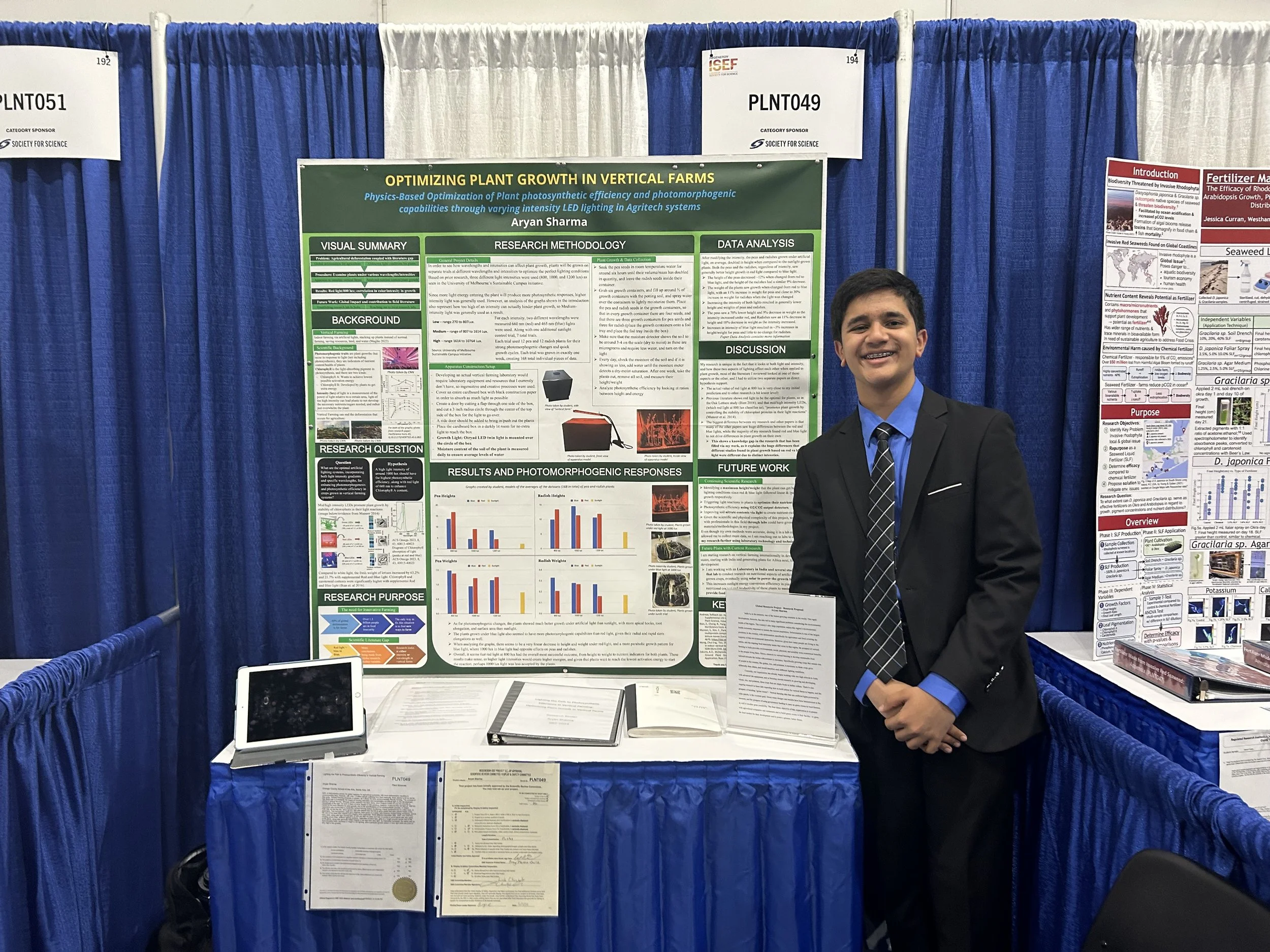 When I was in 9th grade, I conducted some research on optimizing the photosynthetic efficiency and photomorphogenic properties of plants in vertical farming systems, developing unique correlations between light wavelength, intensity, and plant growth and finding an optimal light intensity and wavelength for plants to grow under.